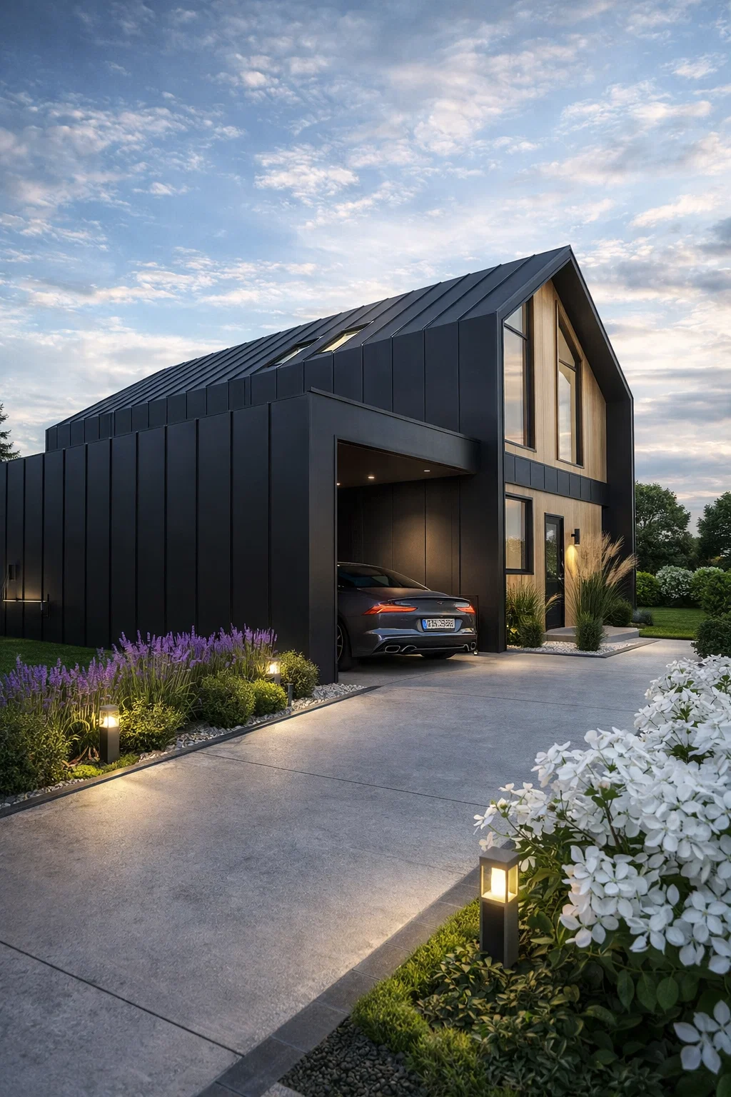 Konstrukcja domu wykonana jest z profili stalowych cynkowanych ogniowo, co zapewnia wysoką trwałość i odporność na korozję. Ściany i dach powstały z płyt warstwowych o grubości 120 mm, wypełnionych pianą PIR, które gwarantują energooszczędność i komfort akustyczny. Zastosowane trójszybowe okna w systemie 7-komorowym skutecznie zatrzymują ciepło wewnątrz i redukują hałas, zapewniając mieszkańcom wygodę o każdej porze roku.