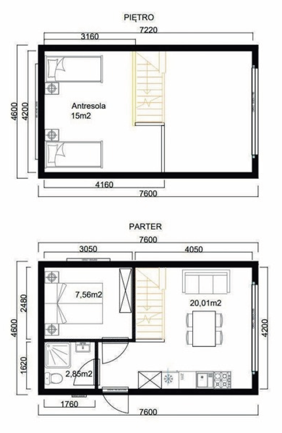 NEXO to nowoczesny dom całoroczny o powierzchni użytkowej 45,51 m², zaprojektowany w kompaktowej, funkcjonalnej formie z antresolą. Parter o powierzchni 30,51 m² tworzy strefę dzienną, natomiast 15 m² antresoli doskonale sprawdza się jako sypialnia lub dodatkowa przestrzeń użytkowa. Bryłę budynku uzupełnia elegancki dwuspadowy dach o kącie nachylenia 36°.